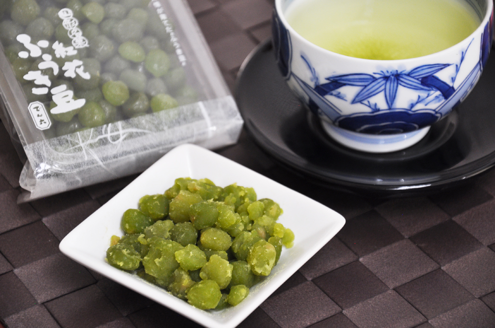 山形名物「ふうき豆」は、皮を剥いた青えんどうを砂糖でじっくりと蒸し上げた、素朴ながらも気品ある郷土菓子です。名前の由来は、製造工程で豆を「蒸かす(ふかす)」ということから「ふき豆」と呼ばれ、それに縁起の良い「富」「貴」の字をあてがい、現在に伝わっています。