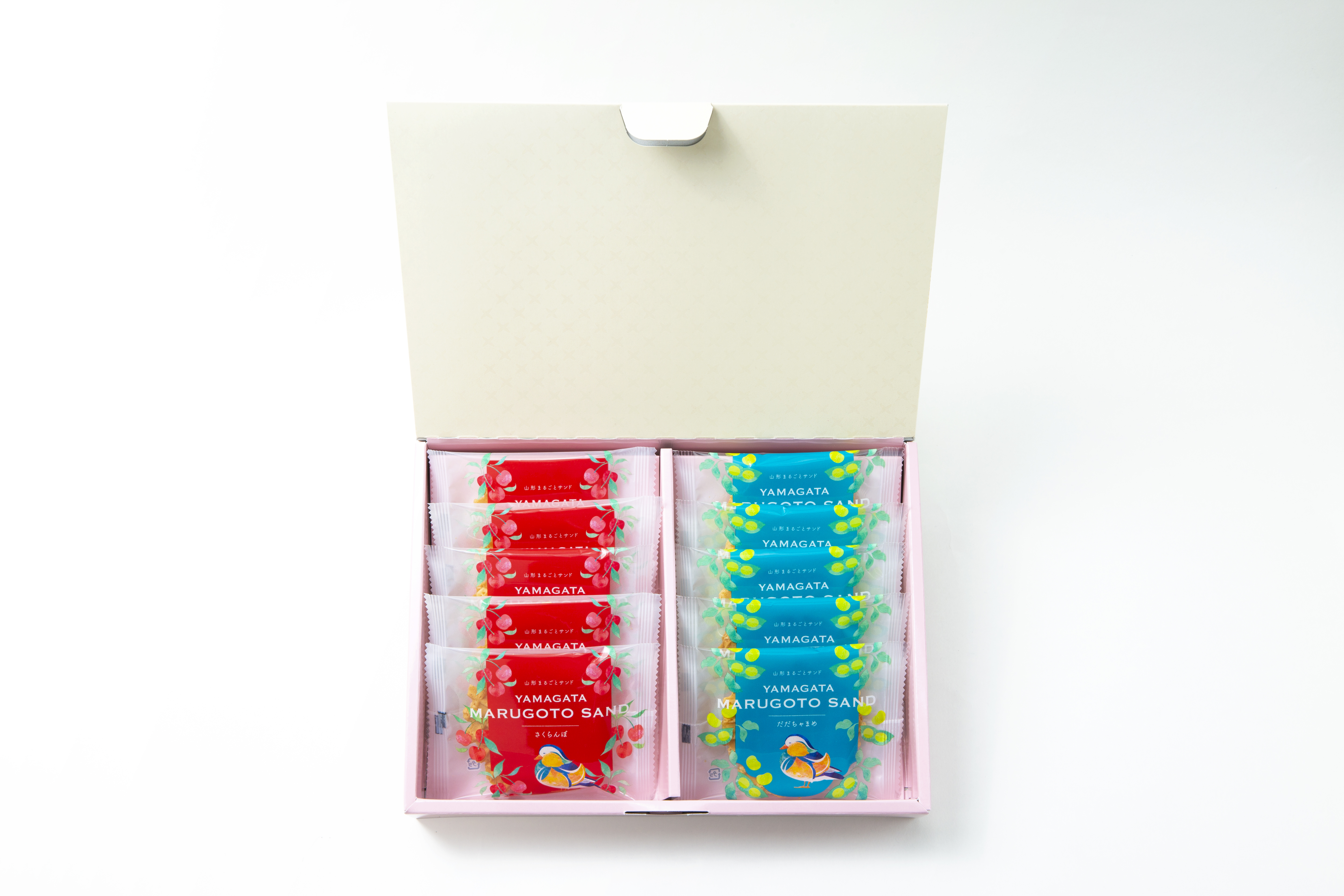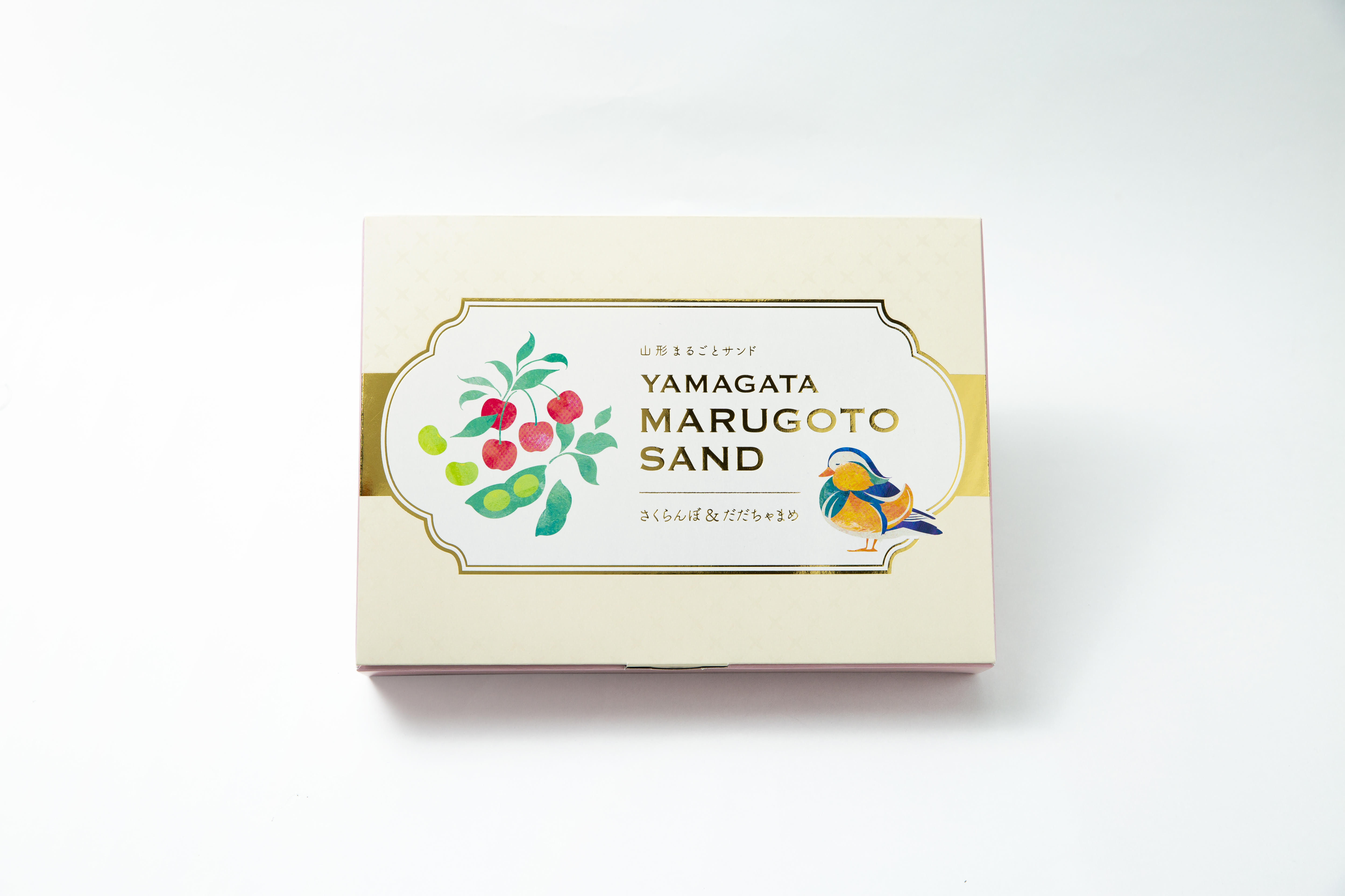 個包装のパッケージには、山形県の鳥『おしどり』をデザイン。